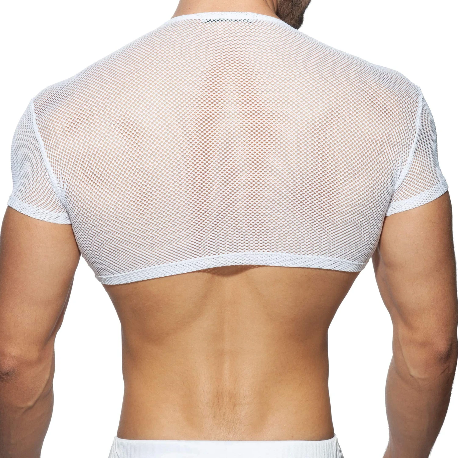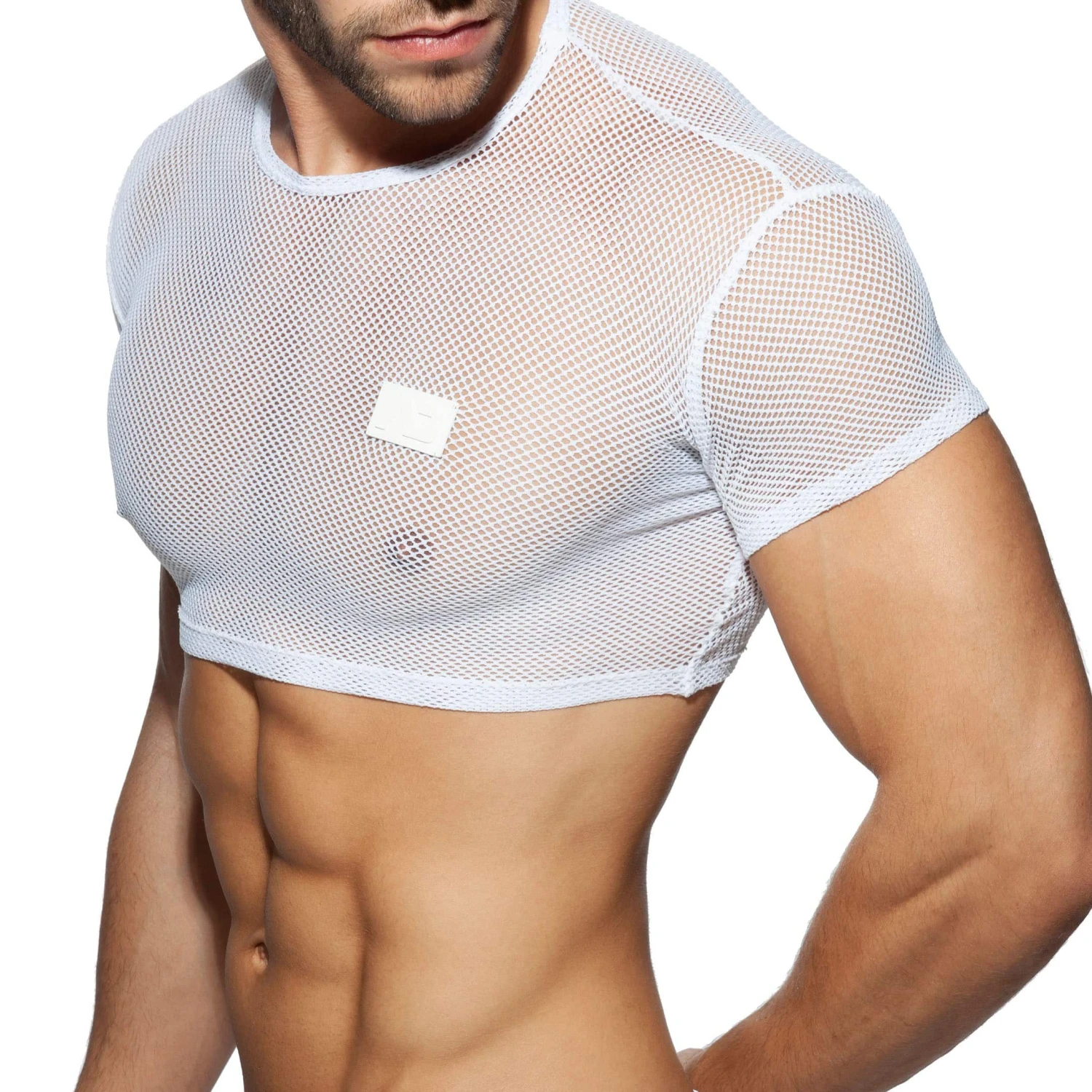 T-shirt très sexy en mesh transparent non doublé de couleur unie. Sa coupe très ajustée a été raccourcie pour dévoiler vos abdos. Logo Addicted en silicone sur la poitrine.