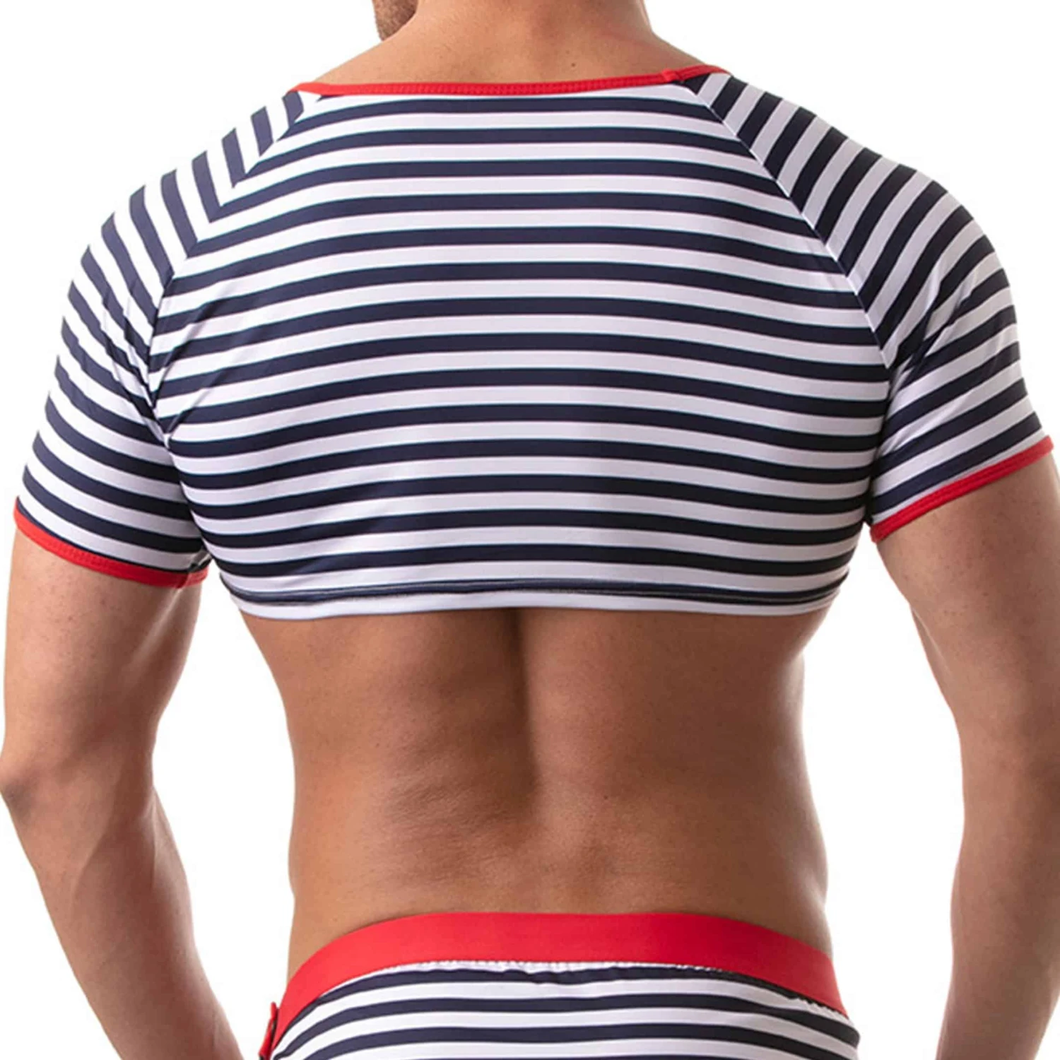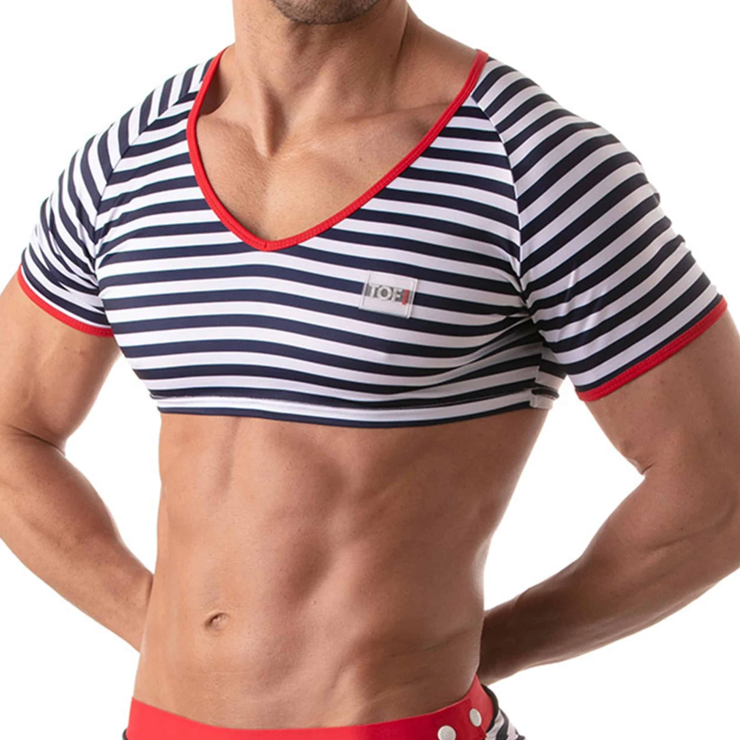 T-shirt sexy en microfibre douce et confortable. Coupe très ajustée et raccourcie pour dévoiler vos abdos. Bordures de couleur contrastée. Manches courtes et col en V profond. Logo TOF Paris en silicone sur la poitrine gauche.