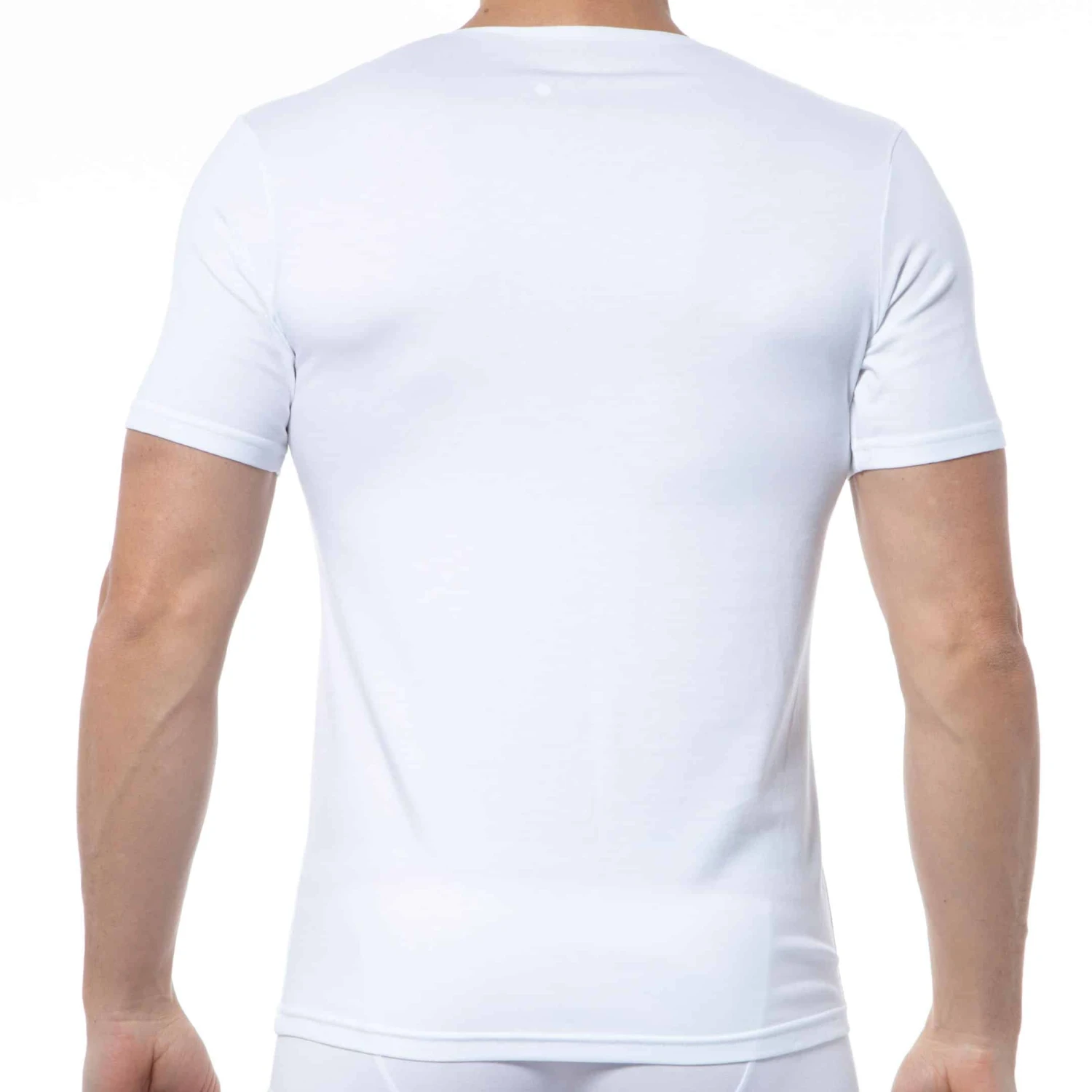 T-Shirt uni en mélange doux et confortable de modal et de coton. Coupe ajustée, simple et élégante. Col en V profond.