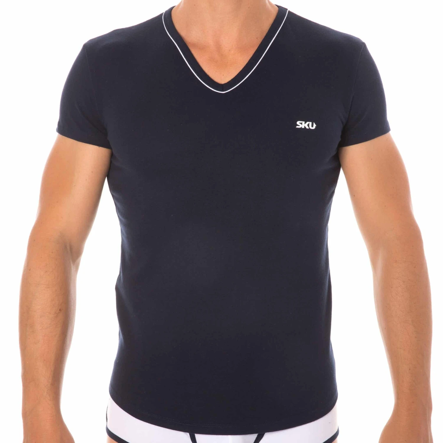 T-shirt sport et sexy en coton premium doux et extensible de couleur intense. Cintré juste comme il faut, il valorisera votre musculature sans gêner vos mouvements. Coupe courte et arrondie en bas, pour tomber parfaitement sur un pantalon. Le col en V est subtilement souligné par un liseré de couleur contrastée. Logo SKU sur la poitrine.