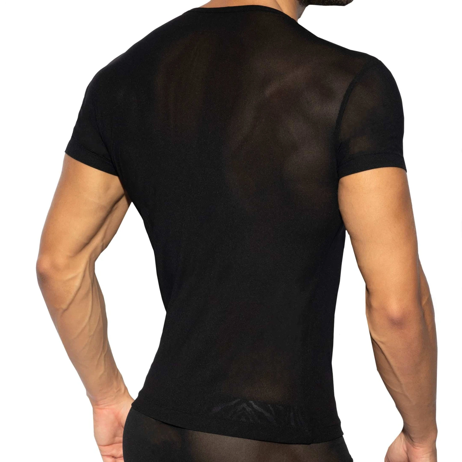 T-shirt très sexy en voile extensible, fin et transparent. Coupe ajustée pour mettre en valeur votre votre corps. Logo ES Collection en silicone sur la poitrine.
